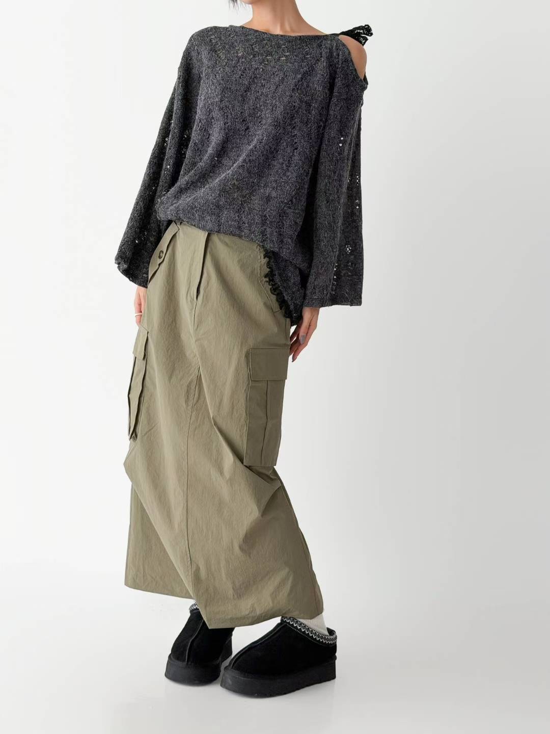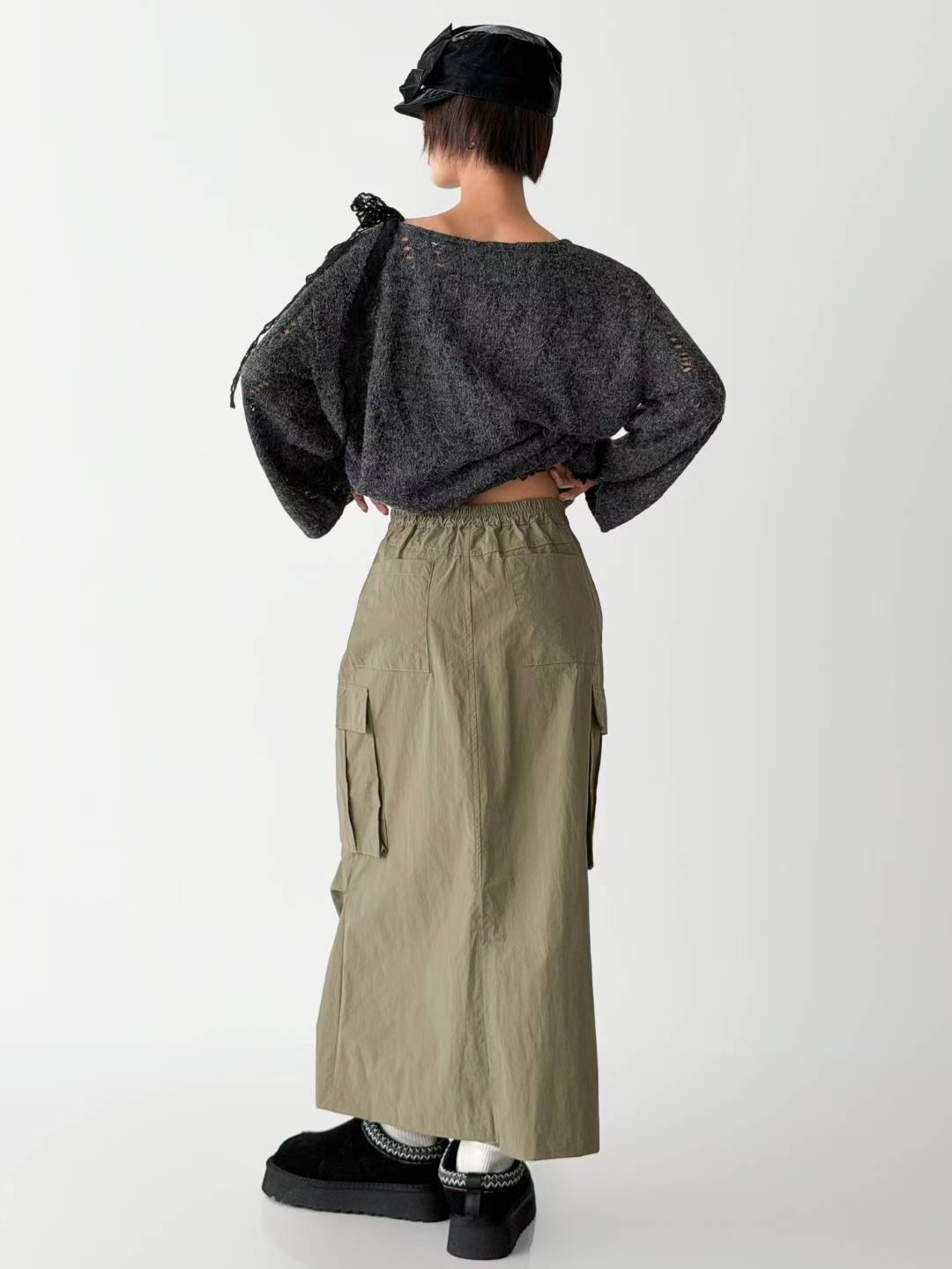 (風褸料工裝袋裙) SIZE :S-L 後面橡筋